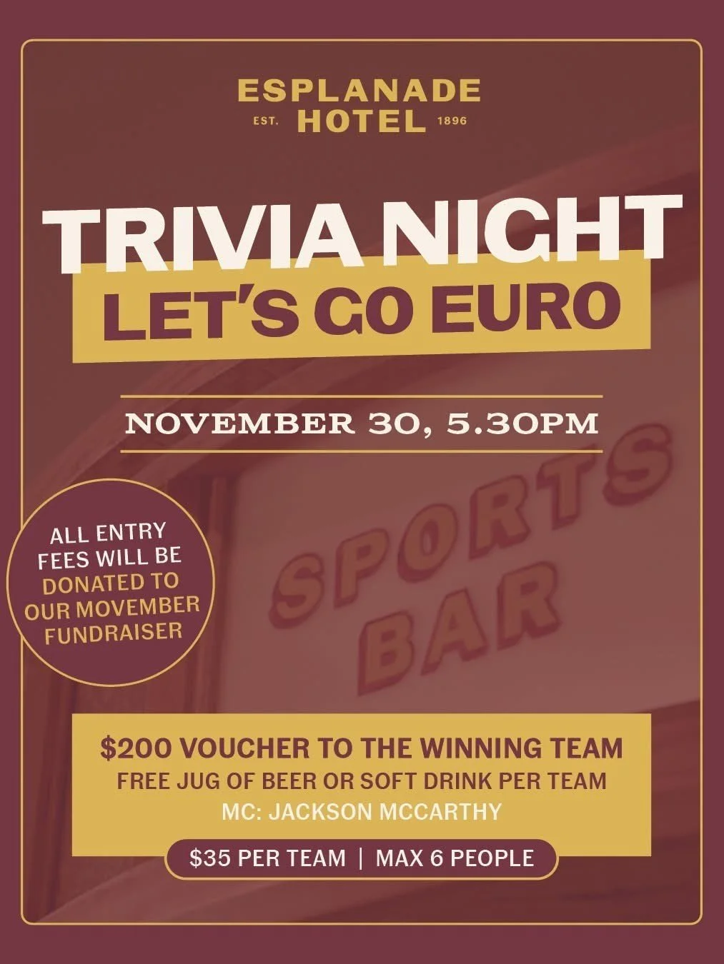 ✅ All entry fees go to the Movember fundraiser