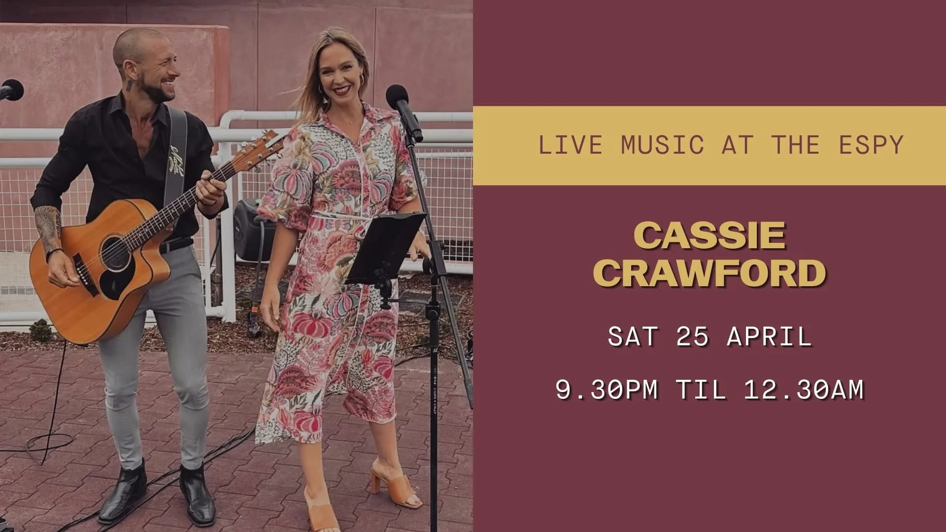 Come down for a great night of live music, drinks, and good vibes. Grab your mates and settle in from 9:30pm as Cassie Crawford plays live till late.