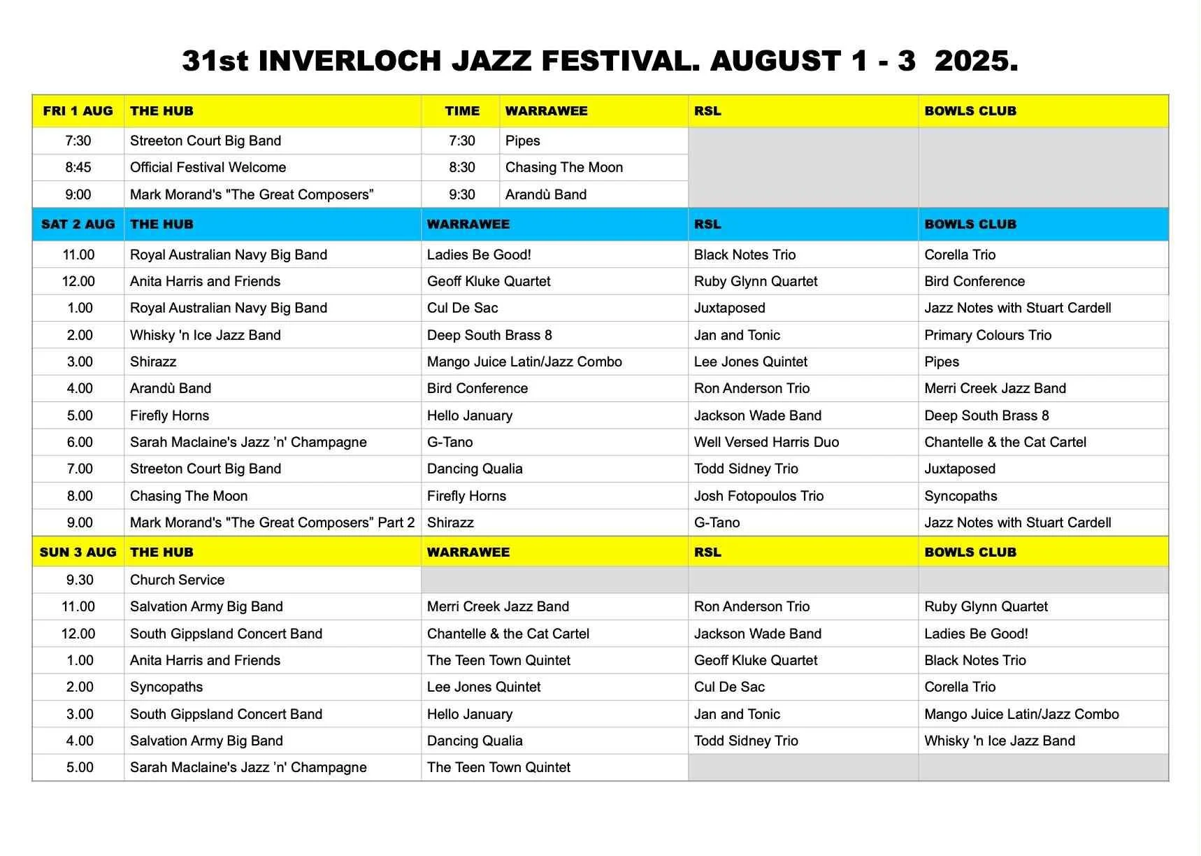 Make a weekend of it—between sets, explore Inverloch’s cosy cafés, modern restaurants, cellar doors, and coastal walks. It’s the perfect off-peak getaway, supporting local businesses while soaking up smooth sounds and seaside serenity.