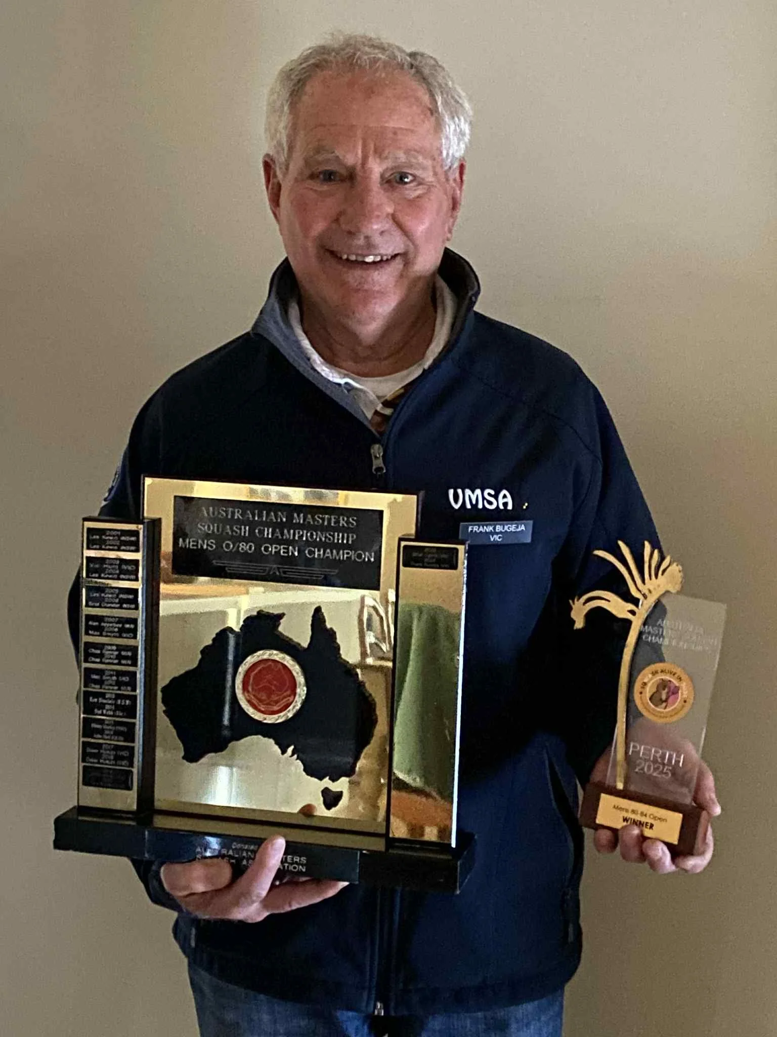 Inverloch’s very own Frank Bugeja has done it again! Fresh from the Australian Masters Squash Championships in Perth, Frank has claimed victory for the second year running, taking out the Men’s Open Championship (80–84 years) — after also winning the title in Canberra last year.